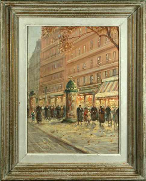 | Abendliche Straßenszene auf einem Pariser Boulevard mit reicher Figurenstaffage | |