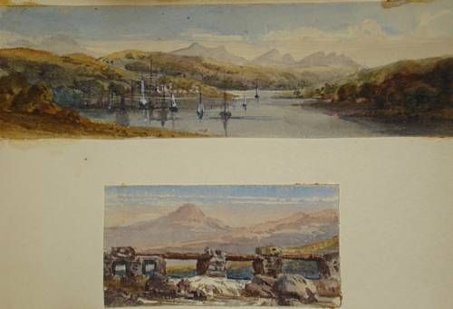 | A sketchbook containing approximately 29 small studies of the coast and landscape around Penrhyn Castle (some loose) | |
