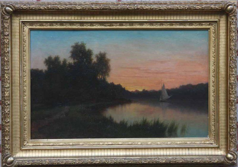 Sommarlandskap med segelbåt-skymning