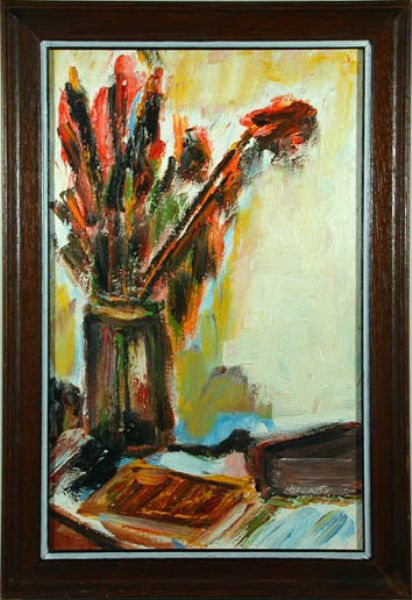Stilleben mit Blumenstrauß und Buch