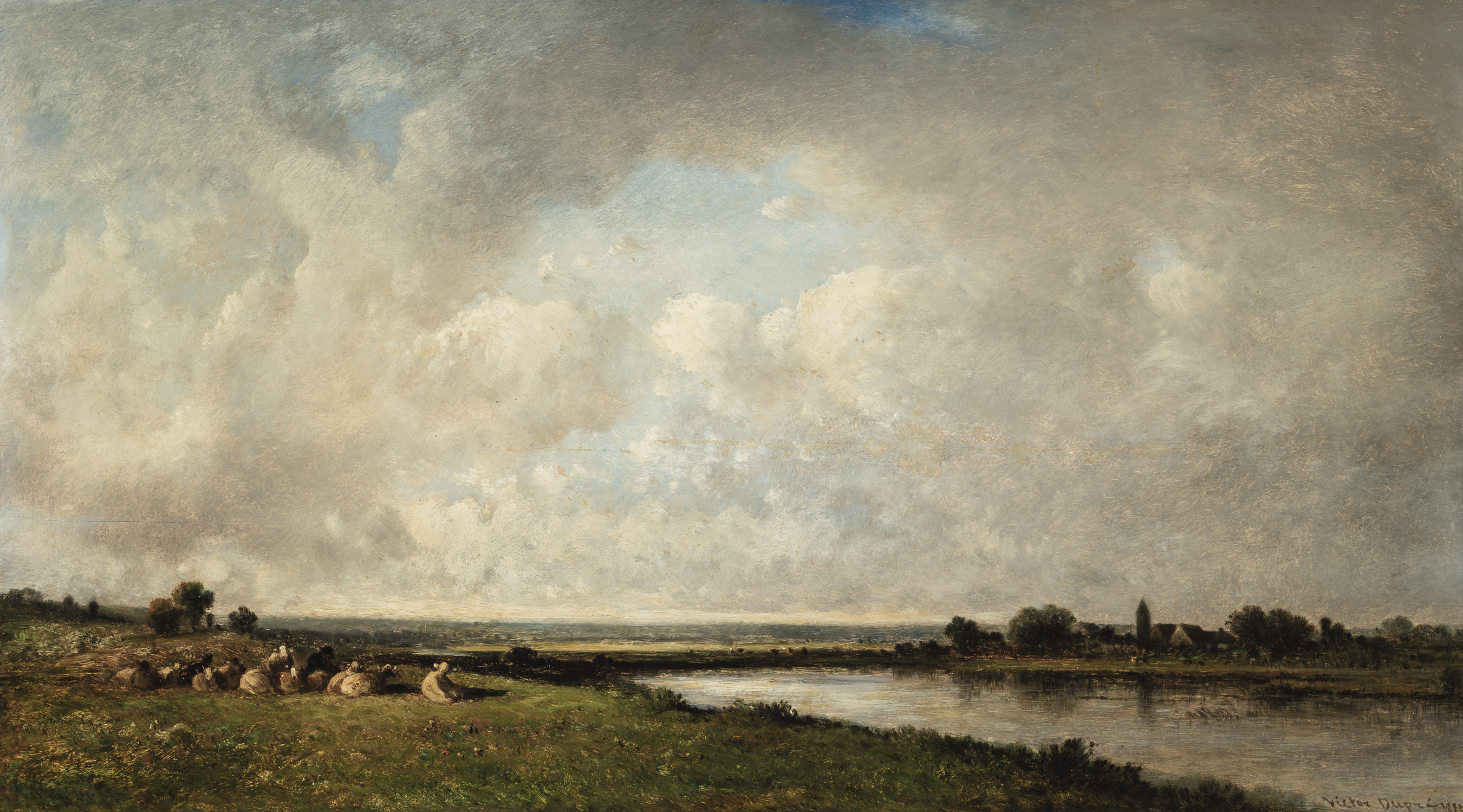 Au Bord de la Rivière Signed and dated 187? lower right Oil on panel, 39.6 x 70.5 cm Provenance: Private collection, the Netherlands * Please note: condition reports and additional photos are available upon request. For more informati | |