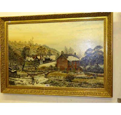 Winter Country Scene Feeding the Chickens