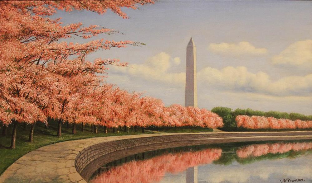 THE TIDAL BASIN WITH THE MONUMENT AND CHERRY BLOSSOMS