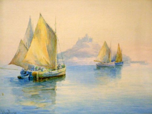St Michaels Mount with fishing vessels