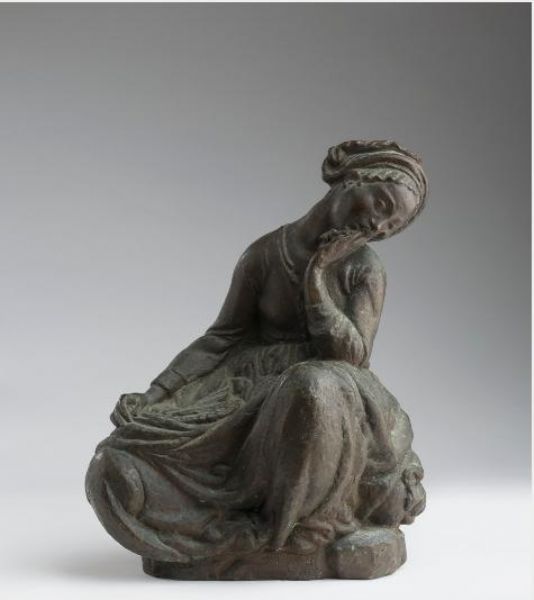 BRONZE GARDEN SCULPTURE OF A SEATED LADY.