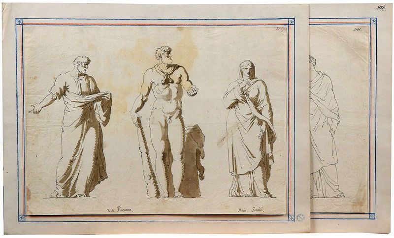 | Studier av romerska statyer - 2 blad, egenhändiga påskrifter | |