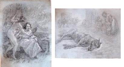 | Étude n°2 pour le personnage d'Honoré de Balzac / Le cheval mort Dessin double face | |
