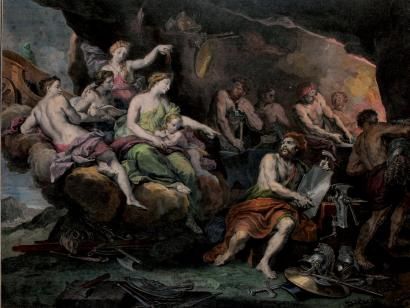 | L'air -l e feu -l a terre -l 'eau Série des quatre éléments gravée d'après Louis de Boullogne. | |