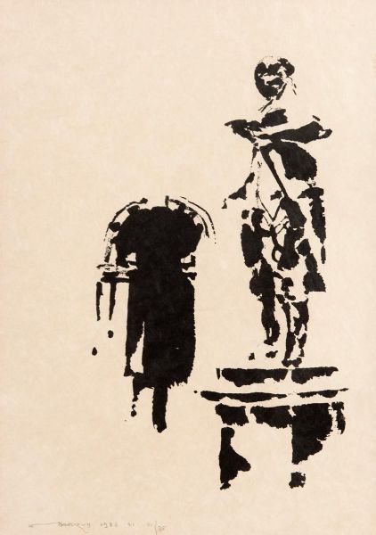 Lithograph brush drawing signed & numbered