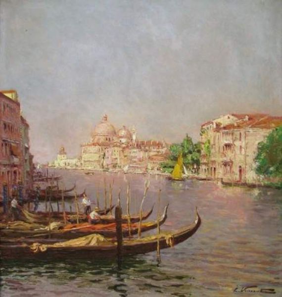 | Sonniger Tag in Venedig mit Blick über den Canale Grande und am Ufer liegenden Gondeln. | |