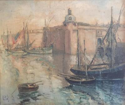 Lucien Marie LEGARDIEN (1908-1978). "Le port de Concarneau". Huile sur toile signée en bas à gauche. 45 x 54 cm. | |