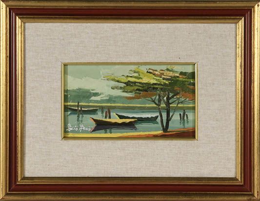 Sommerliche Partie an einem See, im Wasser drei Fischerboote