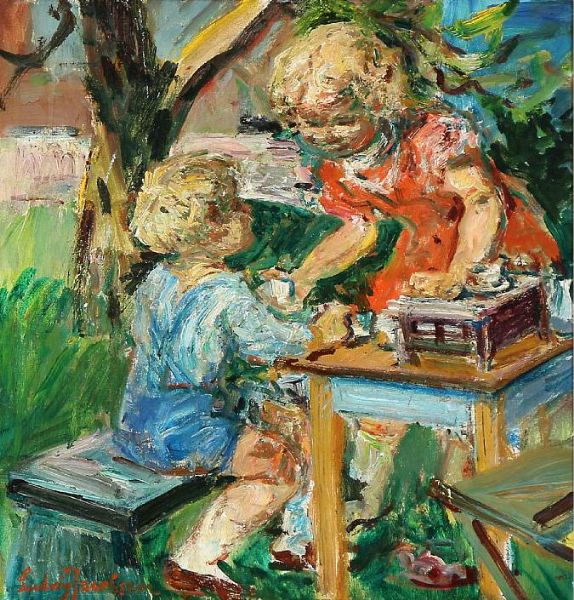 Two children playing tea party and "Jacob von Tyboe"