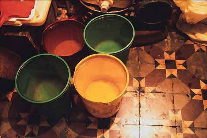 Baldes no mercado de carne