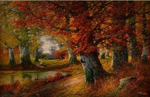 Herbstwald mit Reisigsammlerin