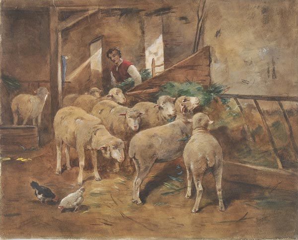 Farmer’s Boy and Sheep in a Barn