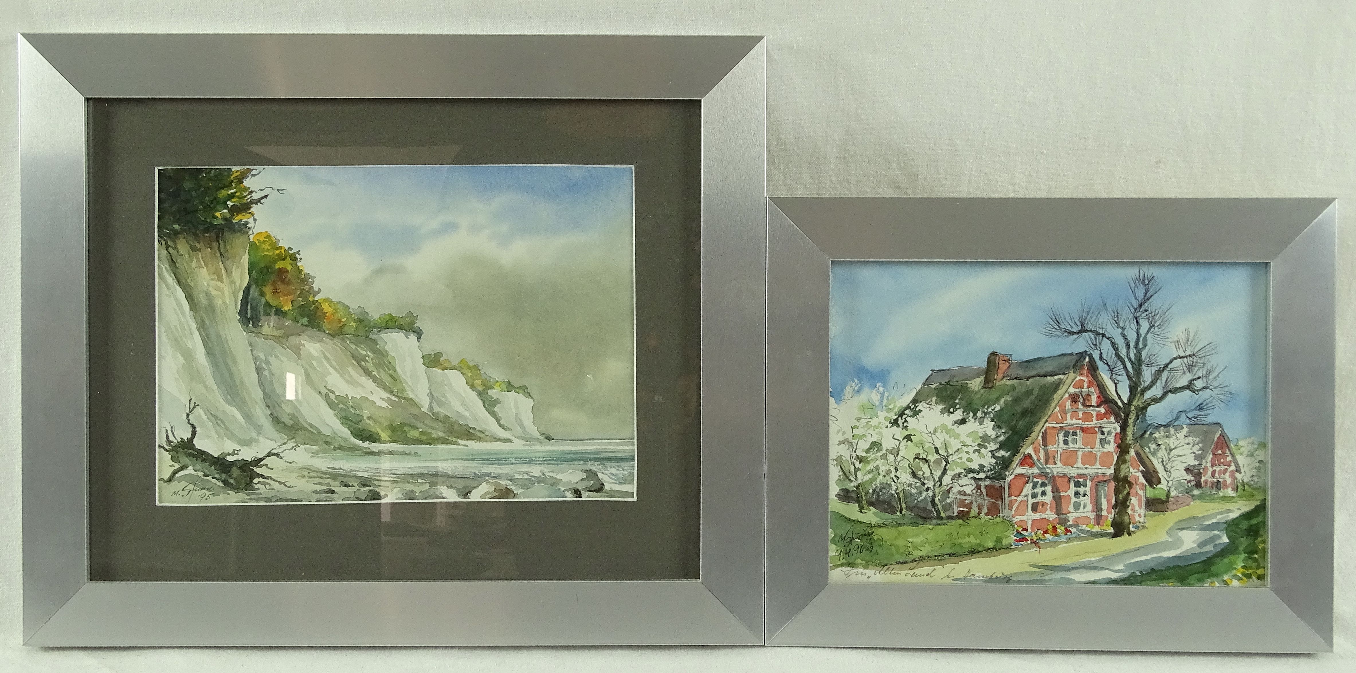 "Kreidefelsen auf Rügen" und "Reetdachhäuser"