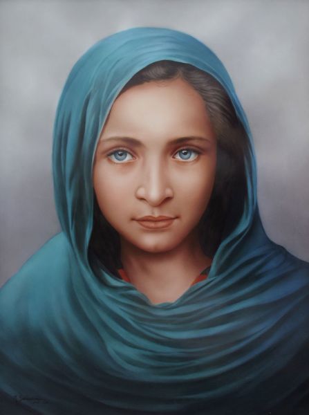 a Young Blue Eyed Beauty in a Green Hooded Robe