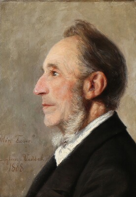 “Min Fader”. My father. Profile portrait of the artist's father, Carl Luplau. Signed and dated Luplau Vedbæk 1888. Oil on panel. 30×22.5 cm. | |