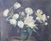 Still life with peonies in a green vase