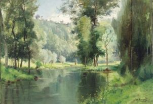Baumbestandener Bachlauf an einem sonnigen Frühlingstag