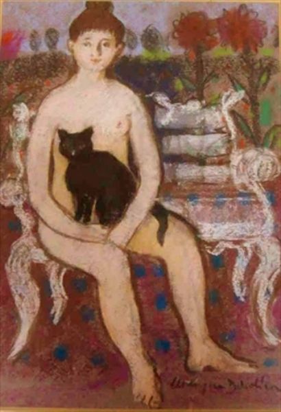 Female Nude and Cat