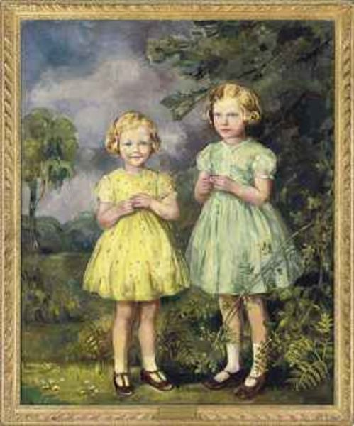 Portrait of two sisters, full-length, in a landscape