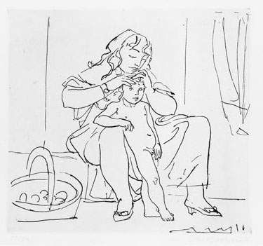 MÈRE ÉPOUILLANT UN ENFAN