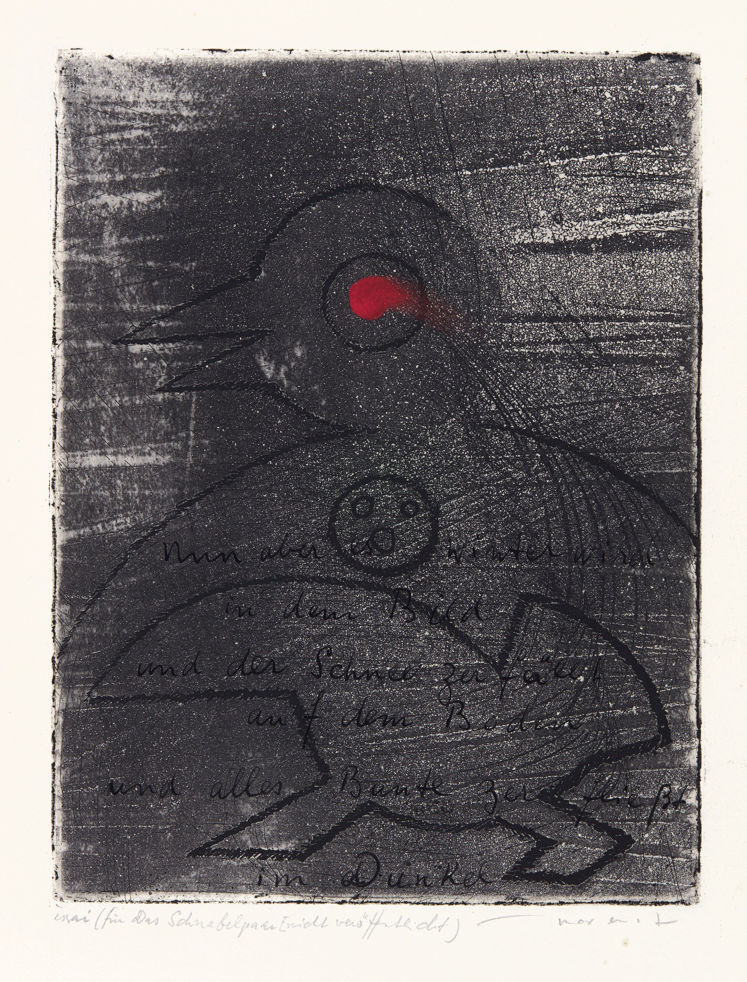 | Etching and aquatint with hand-colouring in gouache and a poem inscribed in ink | |