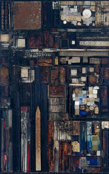 Steel lacquered wood, copper, ceramic, found objects