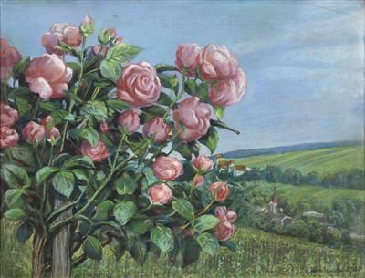 | rückseitig beschriftet mit Blick aus dem Garten meiner Schwester, Mitterwurzergasse auf Neustift am Walde | |