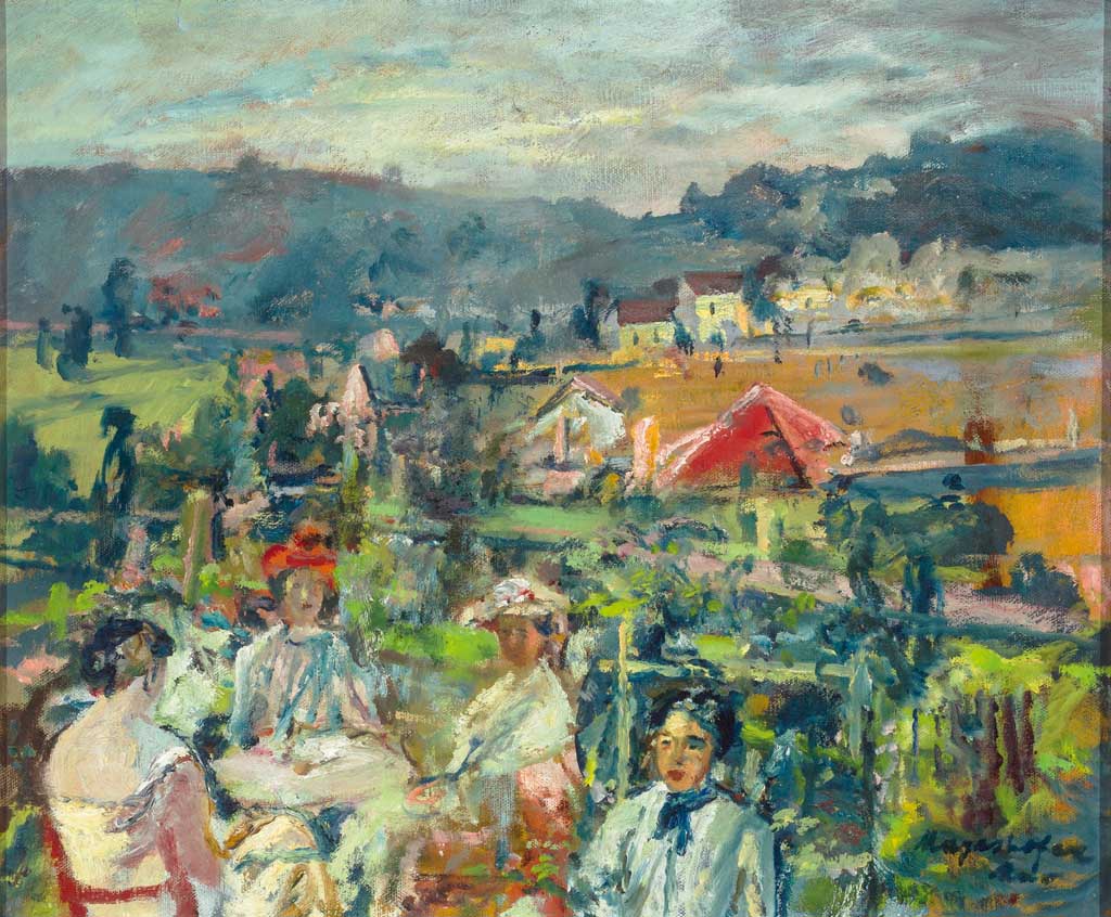 Frauen beim Kaffee im Garten. Impressionistische Schilderung