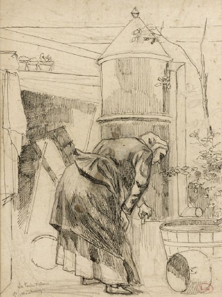 La tante Octavie à la fontaine du grand Montrouge.