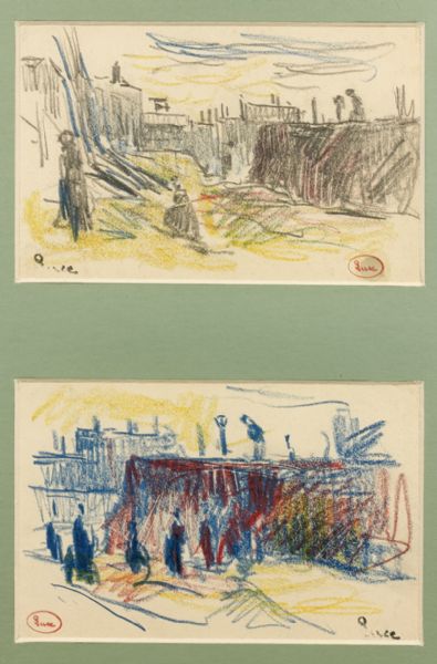 | Le percement de l’avenue Junot à Montmartre : deux dessins sur le même montage. | |