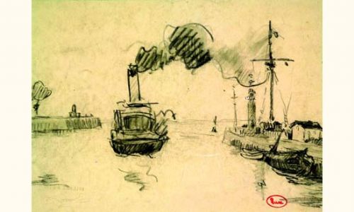 REMORQUEUR SORTANT DU PORT DE HONFLEUR, VERS 1928