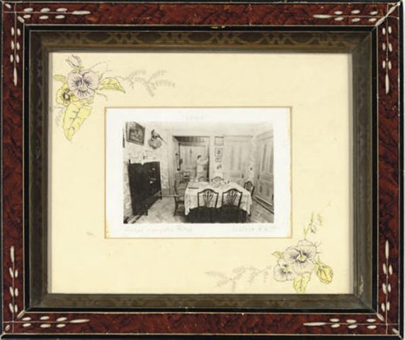 | Photograph framed textile and mixed media collage together with a black and white photograph, 2 items | |
