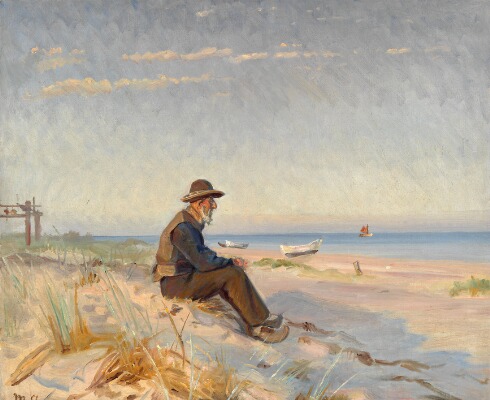 | A fisherman from Skagen sitting on the beach in the afternoon sun | |