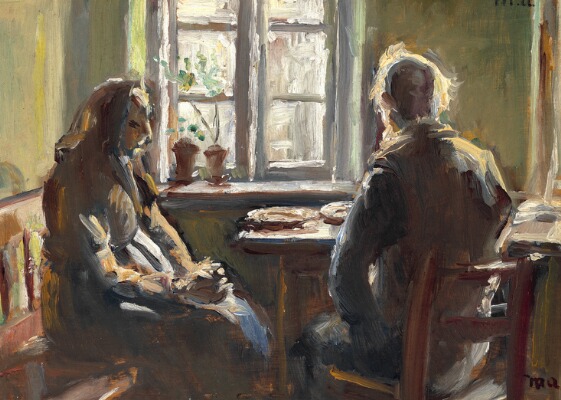 | An old married couple from Skagen sitting at the table in front of the window | |