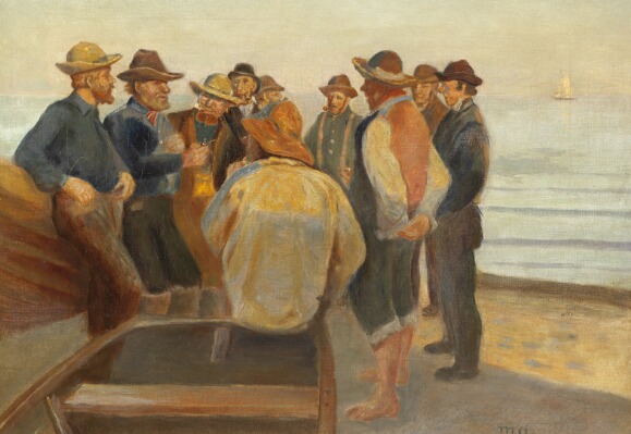 | Fishermen on the beach at Skagen on a quiet summer evening | |