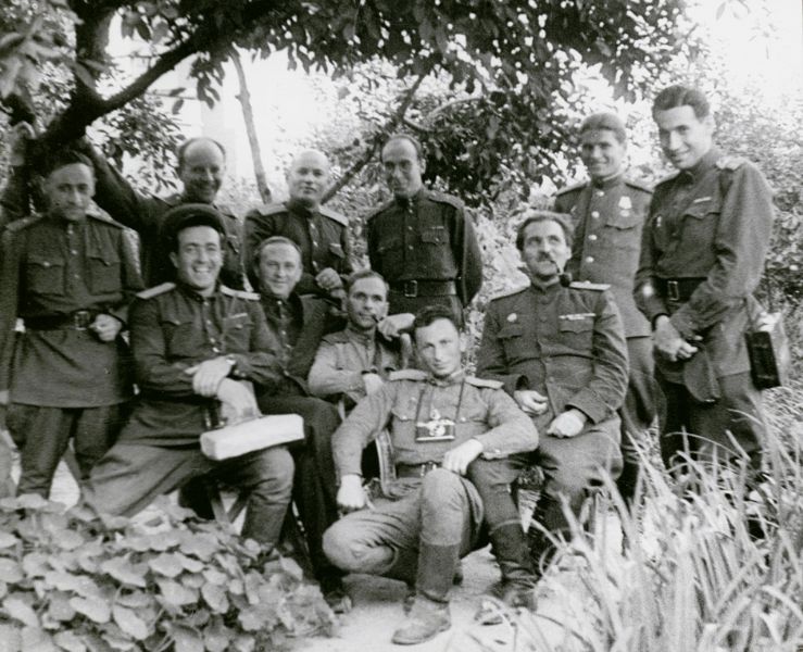 Michail Trachman with Konstantin Simonov and Unknown Russian Officers