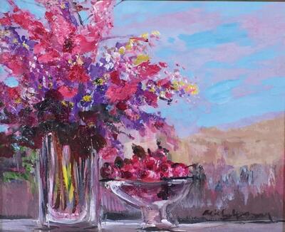 Pommes et fleurs.