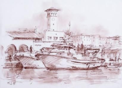 Peintre de la Marine BATEAU DE PÊCHE DANS LE PORT DE CARTAGNE