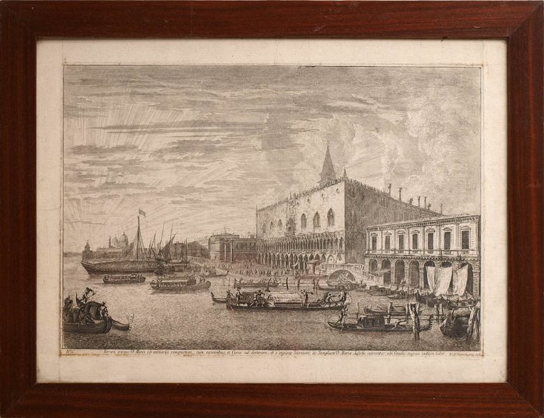 Ansicht des Dogenpalastes mit umgebenden Gebäuden und Anlegestelle