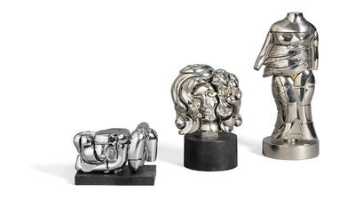 Three nickel-plated or chrome metal multiples, each with incised signature and stamped numbered from the editions of 9500, with instruction books and original boxes. (3)