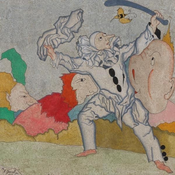 Watercolor gouache and ink on paper
