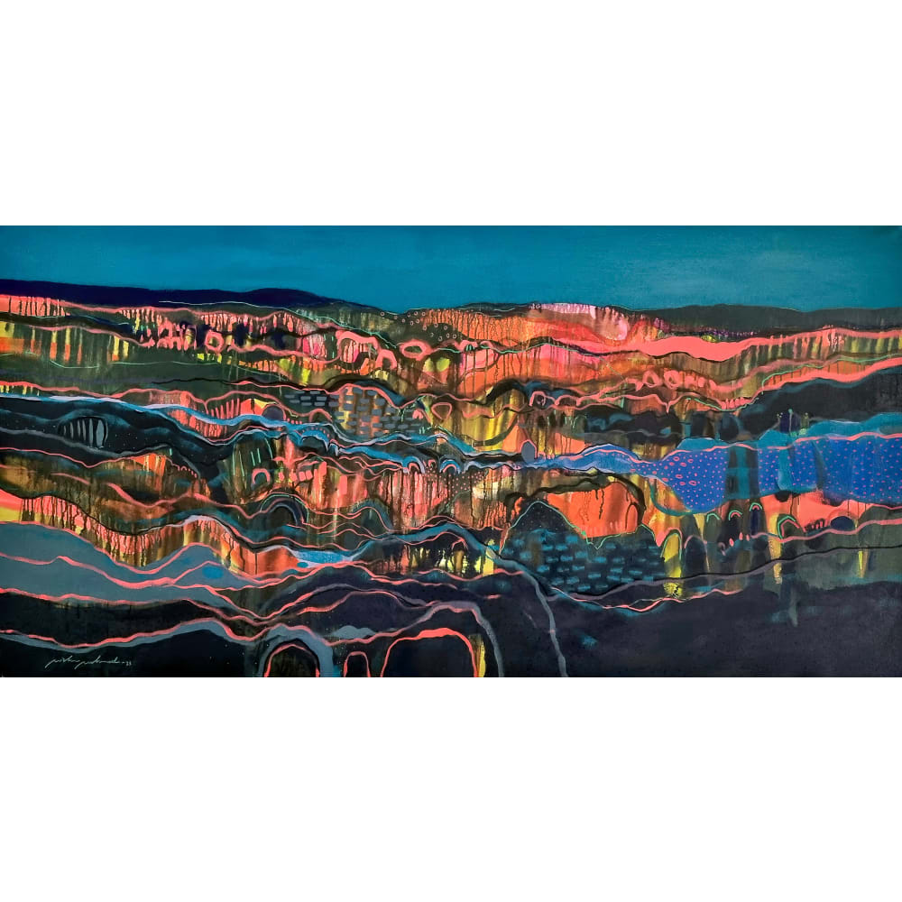 | Acrylic and markers on canvas | |
