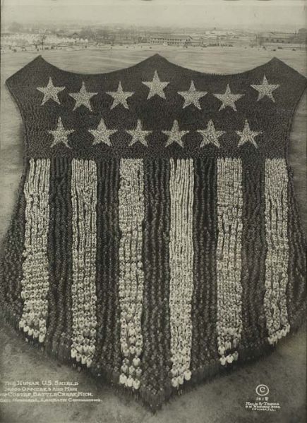 | The Human U.S. Shield, 30,000 Officers and Men, Camp Custer, Battle Creek, Mich | |