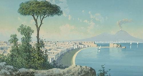 View of the Bay of Naples with Vesuvius beyond; and another view of Naples