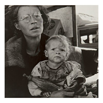 | MOTHER AND BABY OF FAMILY ON THE ROAD, TULELAKE, SISKIYOU COUNTY, CALIFORNIA | |