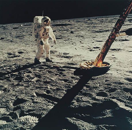 Der Astronaut Edwin Aldrin läuft auf dem Mond. 1969